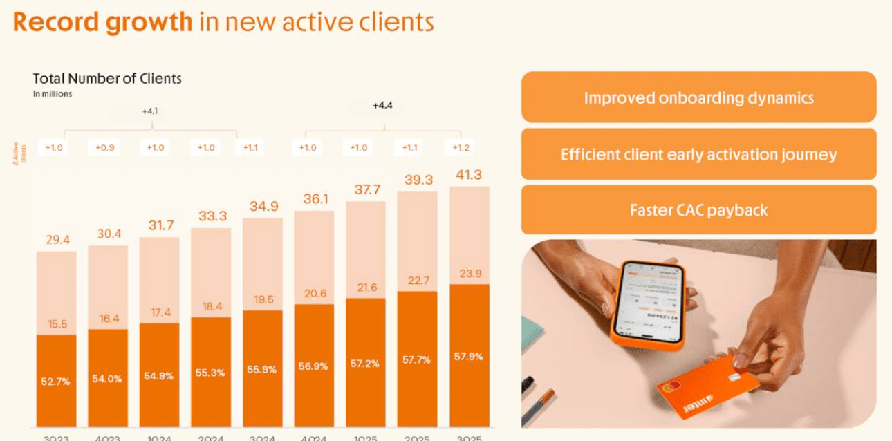 Why are we excited about a position in this one for the medium term? Well, looking forward, Inter & Co is executing a long-term strategic plan often referred to as the 60-30-30 goal, which targets reaching sixty million clients, a 30% efficiency ratio, and a 30% return on equity. To achieve this, the company is focusing on increasing customer engagement and the “activation rate” of its users, encouraging them to use Inter as their primary bank for all financial needs. By leveraging data-driven insights to refine its credit underwriting and expanding its high-margin products like private payroll loans, Inter & Co is striving to transform its rapid user growth into durable, long-term profitability within the competitive global fintech landscape. How about recent performance?
